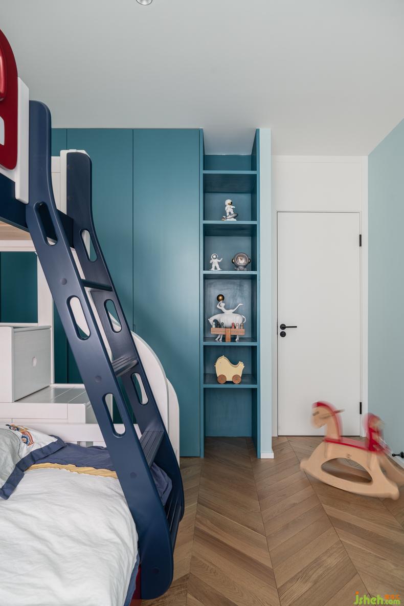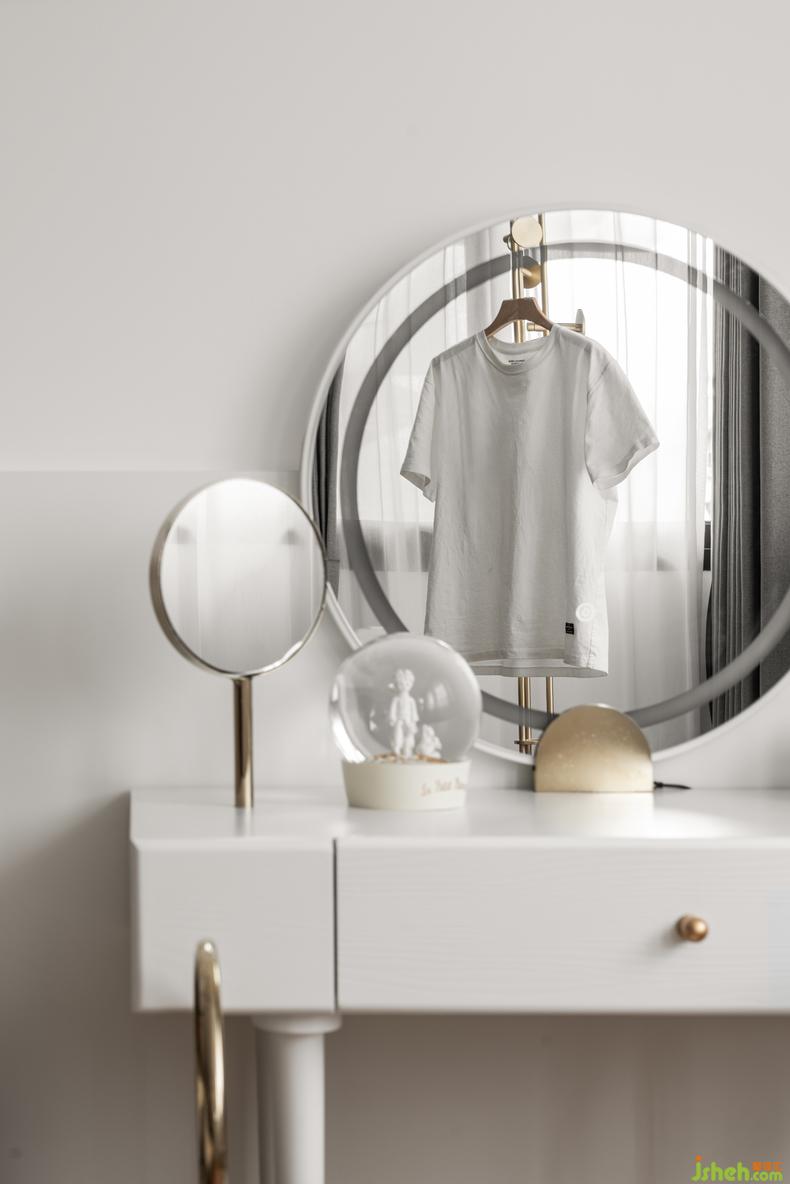 衣帽間設(shè)計(jì)的較為隱蔽,采用白色木質(zhì)移門,完美的與墻體呈現(xiàn)一致的風(fēng)格?;⌒蔚谋邶惾岷土苏麄€房間的線條,散發(fā)出的輕盈、和諧之美。