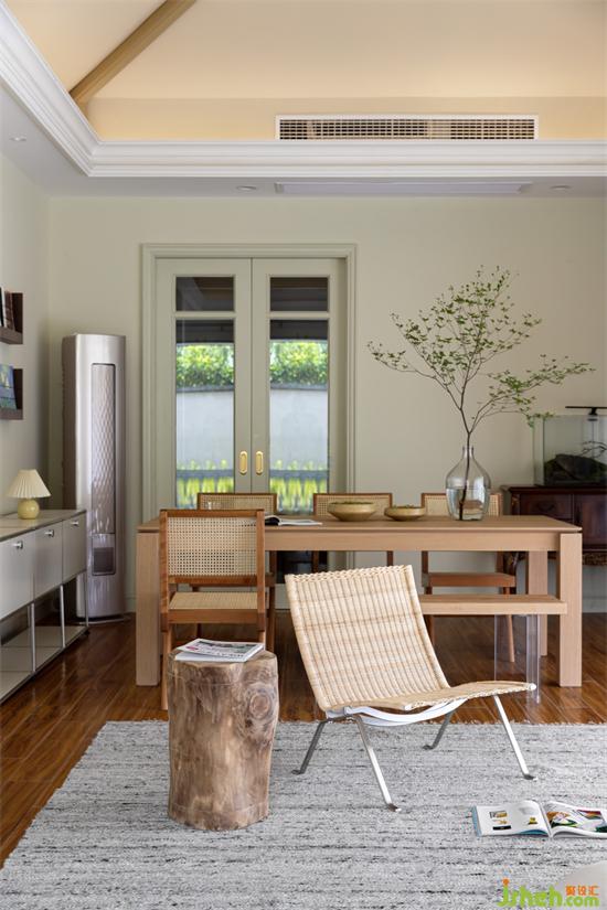 餐廳搭配的是原木風(fēng)餐桌椅,搭配綠色苔蘚和吊鐘,仿佛置身在大自然中享受美食。
