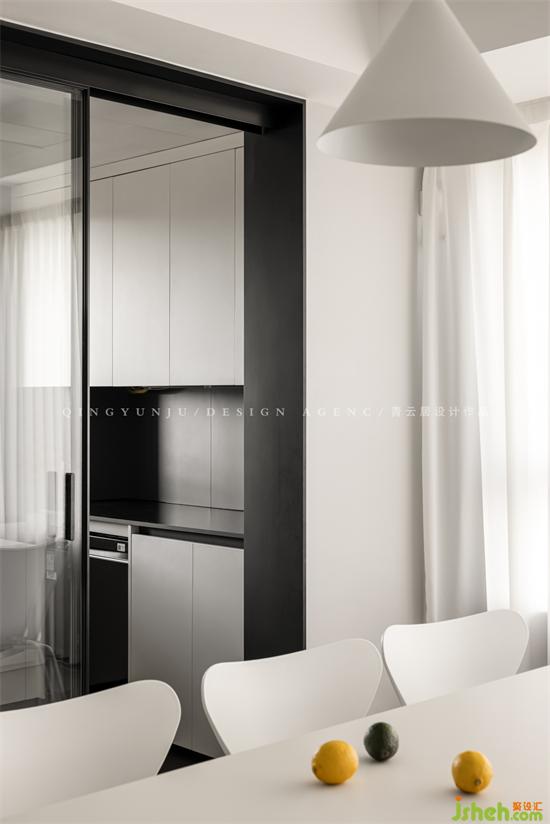廚房是半敞開(kāi)形式,我們烹飪的時(shí)候既可以避免油煙,又避免室內(nèi)設(shè)計(jì)師貓咪跑進(jìn)去。