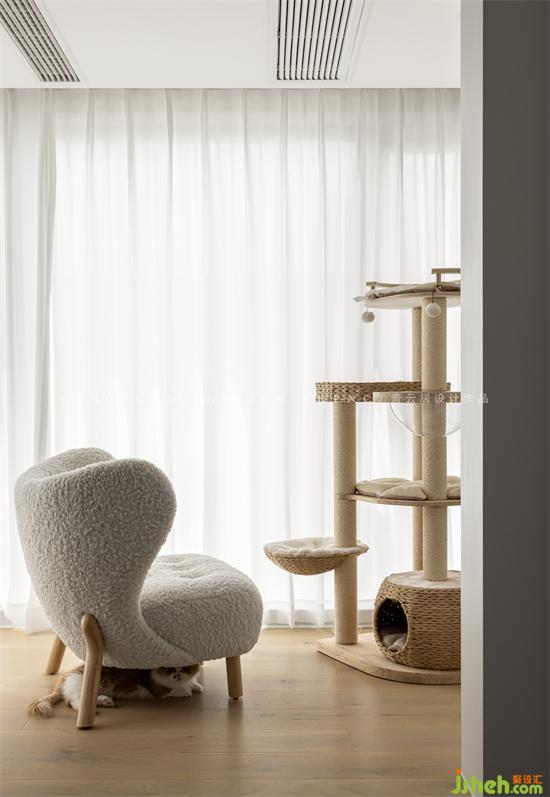 我們把光線最好的陽臺留給了三只貓,喜歡懶懶的曬曬太陽,在貓爬架上蹦蹦跳跳,我們也會坐在這里曬一下太陽、室內(nèi)設(shè)計(jì)師看看書、擼擼貓咪……