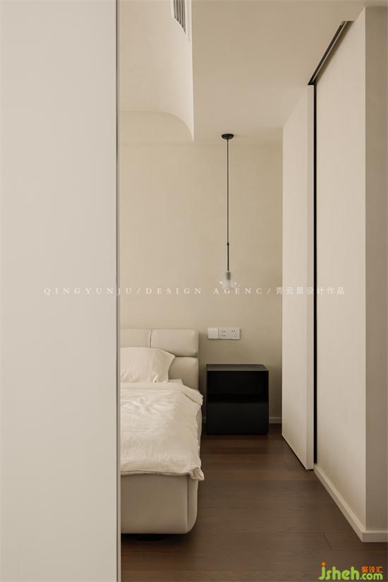 主臥的墻面也是采用的藝術(shù)涂料,肌理+白色色調(diào),室內(nèi)設(shè)計師整體簡單又有藝術(shù)感。
