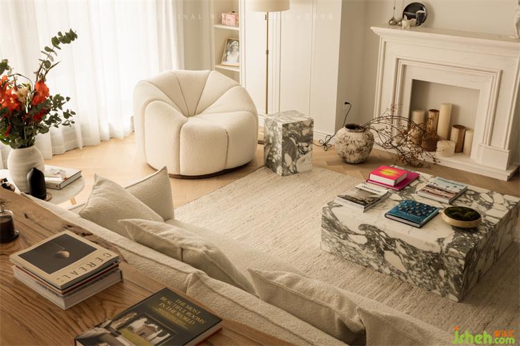 大理石茶幾,造型簡潔大氣,融入了石材的本質(zhì)紋理,杭州錦麟府裝修設計搭配整體軟裝,滿滿的現(xiàn)代奢華氣質(zhì)。