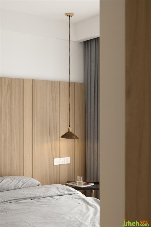 床頭背景墻與地板色彩相呼應(yīng),杭州世貿(mào)之西湖家裝設(shè)計(jì)搭配窗簾的淺灰色和紗簾,靈動富有生氣,原木風(fēng)設(shè)計(jì)總是能給人一種柔軟舒適、優(yōu)雅溫馨的感覺,這也正是對家的向往。