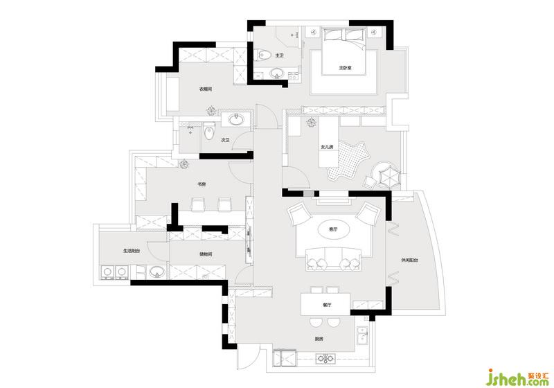 我們設計公司拋棄了傳統(tǒng)正對電視墻的客廳格局,把電視隱藏在黑色背景墻中;我們設計公司拋棄了位置不好的封閉廚房,把廚房餐廳客廳融為一體:打通的廚房讓空間更通透,也給小朋友更多活動的地方;我們設計公司又給凌凌布置了她心心念念的壁爐,也給妹妹做了一個萌萌噠的女兒房;擁有獨立衣帽間的主臥室,有著強大的收納功能;可變的書房為未來的小朋友做足準備。