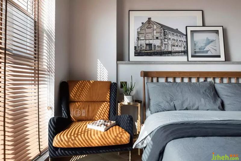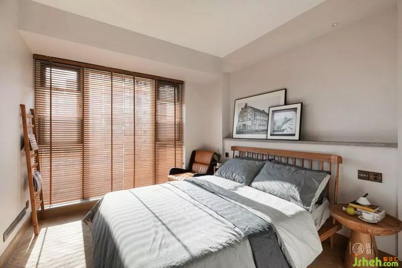有著良好采光的次臥,陽光透過百葉窗,投下斑駁的光影。