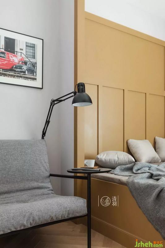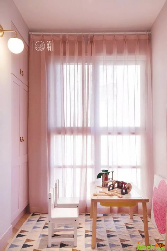 這個房間是這套房子面積最小的臥室,為了充分利用空間,并且讓房間看上去不擁擠,我們室內設計師選擇了使用榻榻米。這里除了客房的功能,平時更是兩個寶寶玩耍的地方。