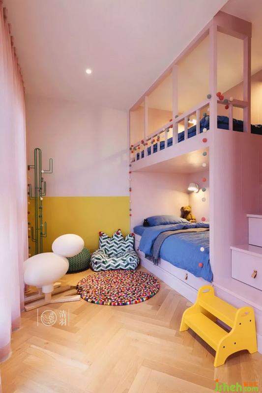 為了有更多的空間用來給兩個寶寶活動,兒童房現(xiàn)場室內設計師制作了高低床,并整合了書柜和大容量衣柜。光線最好的區(qū)域都空著讓寶寶玩耍。等她們逐漸長大,再按需要添置家具進去。