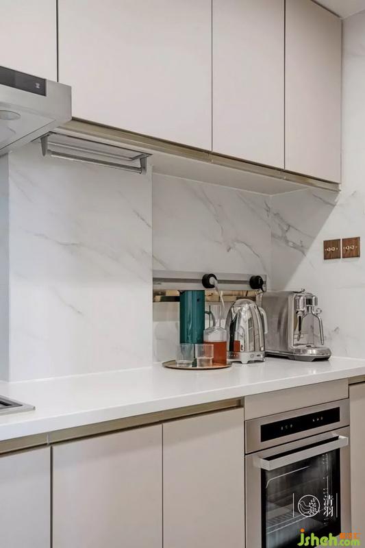 廚房是我們非??粗氐牡胤剑援敵醢褢粜透脑斓闹匦姆旁诹藦N房。室內設計師改造后的廚房有接近8米的櫥柜,所以使用起來覺得很方便,廚房設備都有各自的放置區(qū)域。