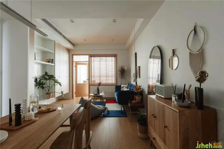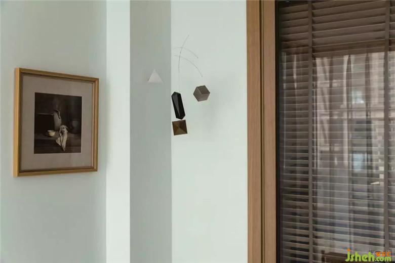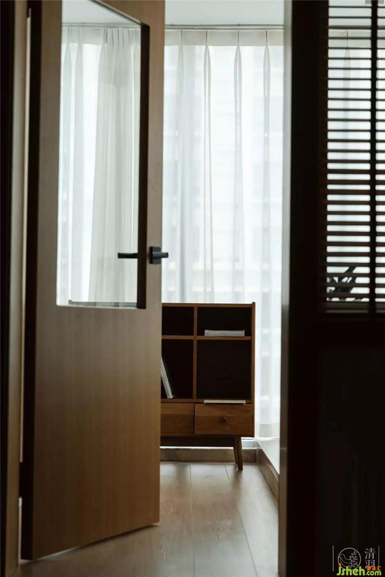 為了保證這一塊區(qū)域的私密性,又不影響客廳的透光,我們做了一個半玻璃的隔斷墻輔以百葉窗簾以顧兩全。