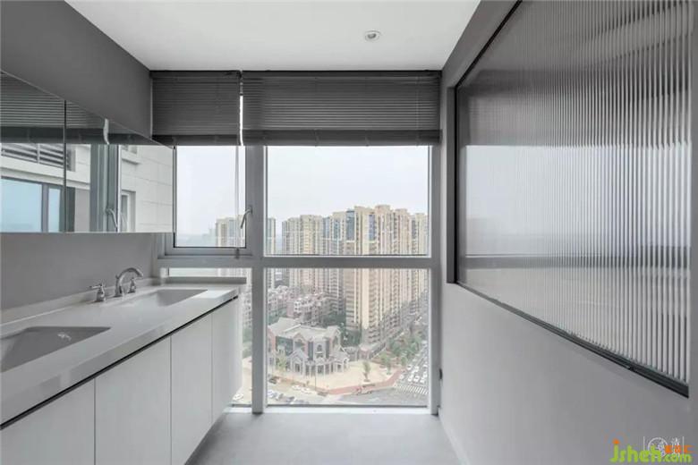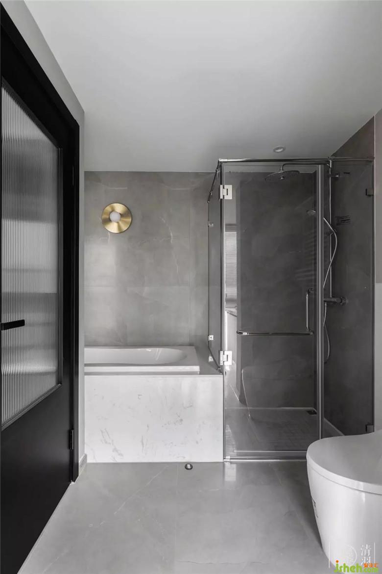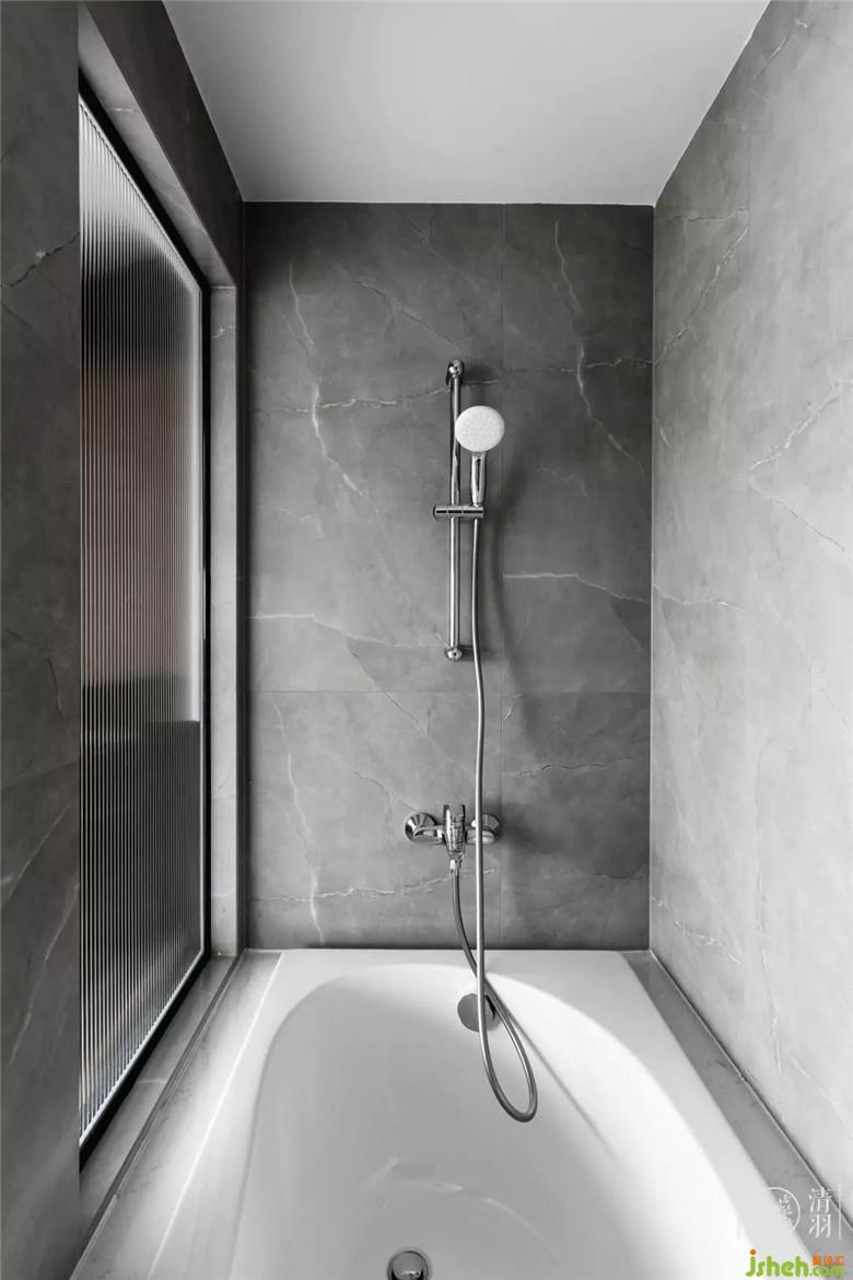 浴缸原本是想放置在靠窗的位置,后來出于安全考慮移到了內(nèi)側(cè),和洗漱臺平行,中間用長虹玻璃做了隔斷,保證隱私性的前提下最大限度采光。