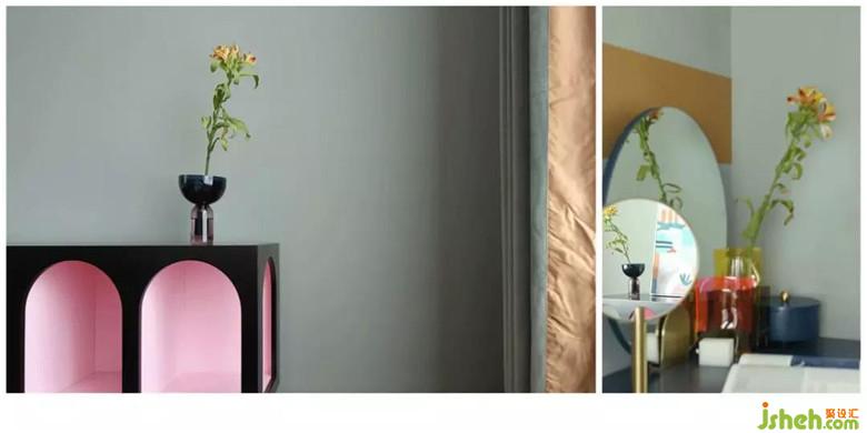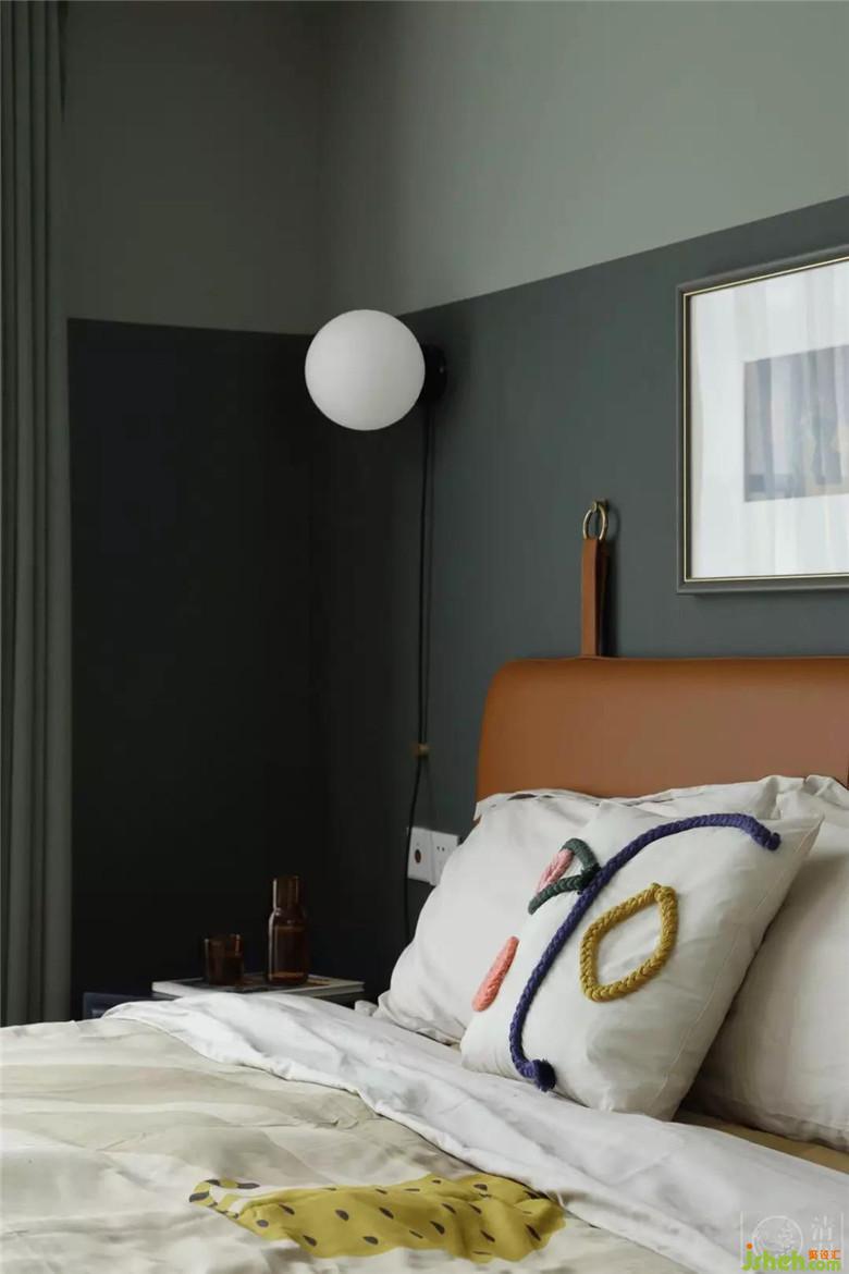 于是在2.14 日浪漫的情人節(jié),我們一起敲定了如今主臥室的乳膠漆分色造型,床頭姜餅黃的色條從畫的背后緩緩蜿蜒至梳妝臺,讓整個(gè)臥室更加有始有終,圓滿完整。