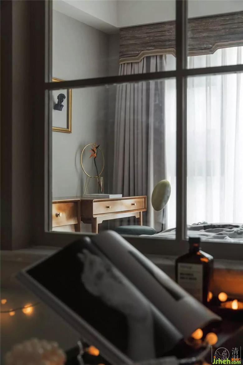 從主衛(wèi)看向主臥,隱約、婉轉(zhuǎn)。