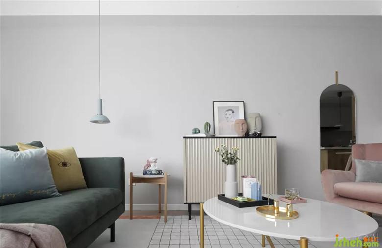 房子的整體采光都很好,我們也盡量的保留大部分的格局不變,讓自然光線可以撒滿整個屋子。因為廚房的格局與采光較弱,所以改動較大,廚房改為開放式的布局,增加吧臺與收納的空間。生活陽臺則從衛(wèi)生間通過,這樣廚房的空間也通透明亮起來。而在色彩上,我們也是采用大面積的灰度色彩,搭配低飽和度色調(diào)的的家具,讓整個房間通透而雅致,再用一些明亮顏色的配飾點綴其中,讓空間充滿趣味。