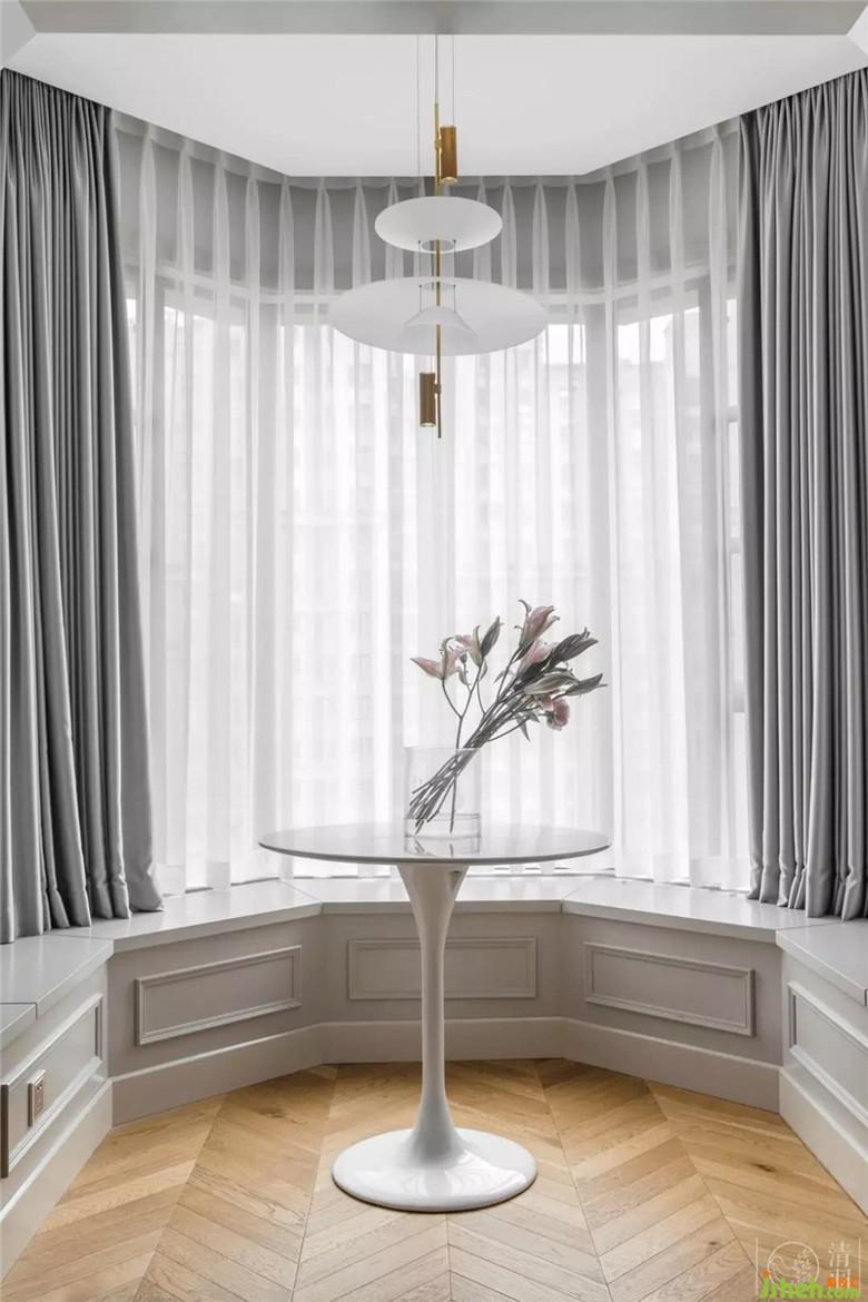 主臥有一個不大不小的陽臺,也剛好給了屋主一個可以放空的地方。白紗加銀灰色端面材質(zhì)的雙層窗簾,既能讓陽光均勻的鋪滿房間,也能關住一室的旖旎。