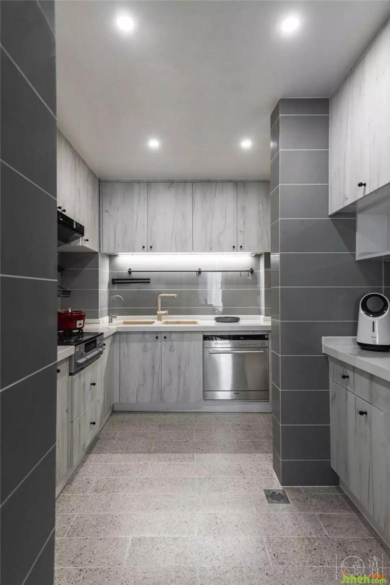 原始戶型的廚房空間相對局促,我們通過戶型優(yōu)化擴(kuò)充出來的空間增加了櫥柜的長度,讓廚房的使用更加的方便。