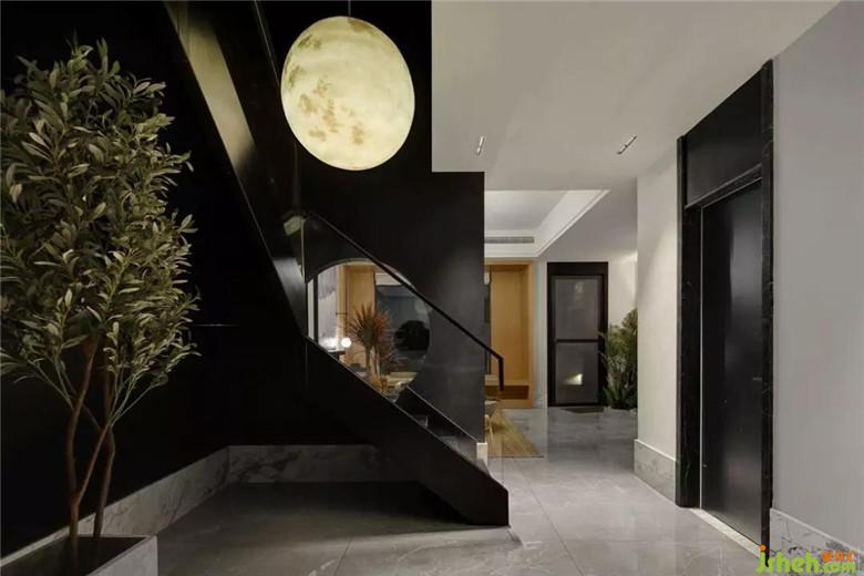 三層樓的小別墅里安裝了地暖、中央空調(diào)、電梯,希望來到這里的人不需要被溫度、樓梯所束縛,從而擁有更加舒適方便的體驗。我們讓三個臥室呈現(xiàn)出不同的空間表情,為每個臥室搭配了不同的色彩和擺設(shè)。樓梯間出現(xiàn)的“月亮”,寓意“海上升明月,天涯共此時”。配合背景圓形鏤空的造型,我們希望帶給所有來這里度假的人們"團(tuán)圓"的感覺。移步換景,團(tuán)圓的概念貫穿在整個空間。