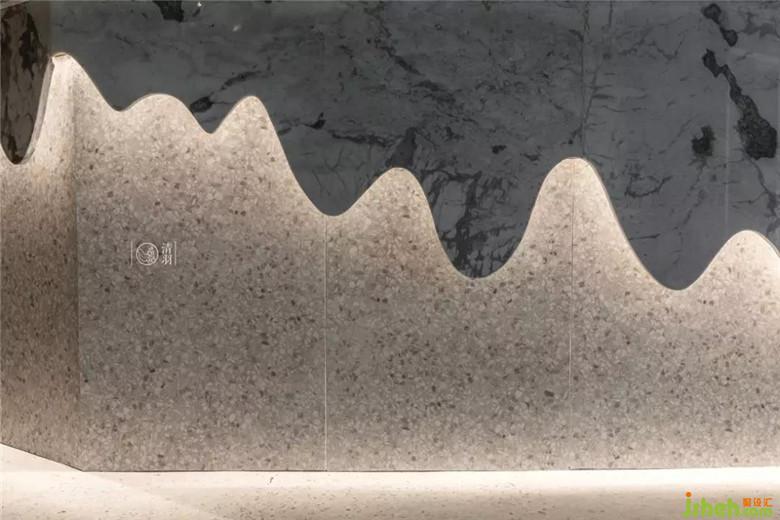 吧臺(tái)區(qū)、奶茶區(qū)以及盥洗臺(tái)的石材造型,就像奶油流下來的效果: