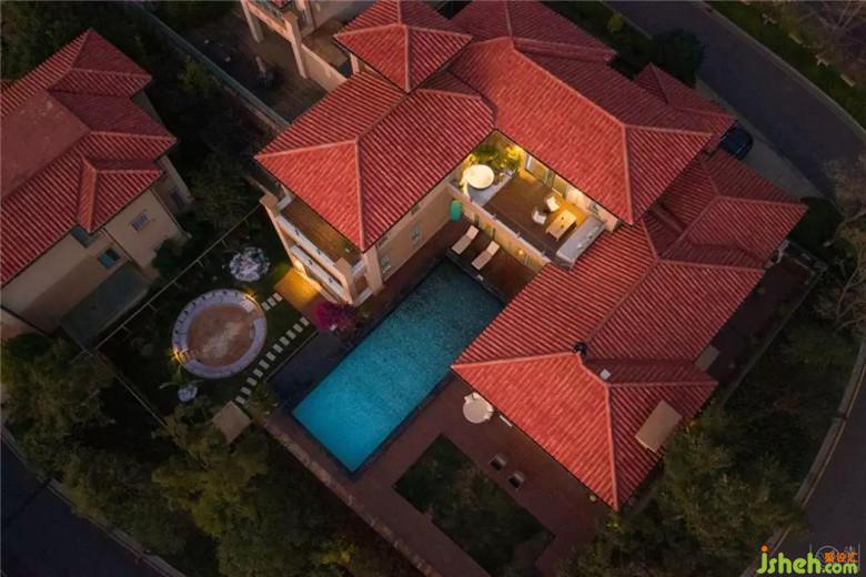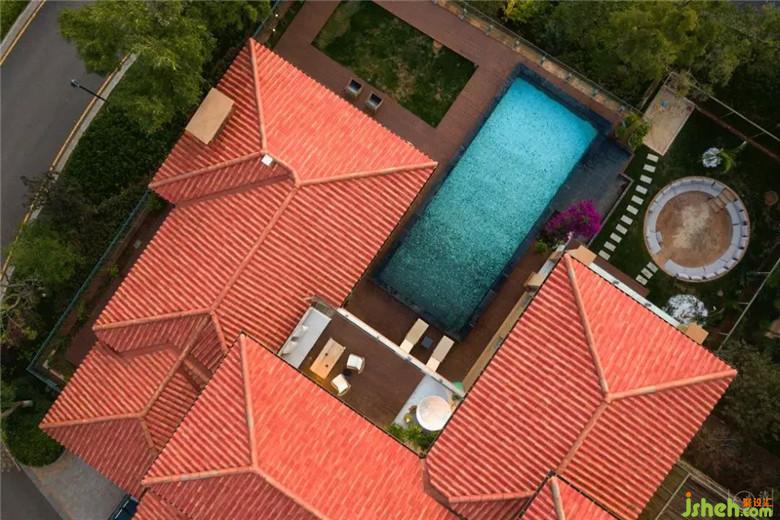 當(dāng)然,嚴(yán)格意義上來講,游泳池是開發(fā)商準(zhǔn)備的。我們只是為它挑選了不一樣的外衣。這里的湖水特別清澈也特別藍,這一次我們特意跳出了城市里泳池慣常使用的藍白色馬賽格法則,以黑白馬賽克漸變拼貼的方式,使它在水光的折射下顯出有細碎寶石藏于水下的質(zhì)感。