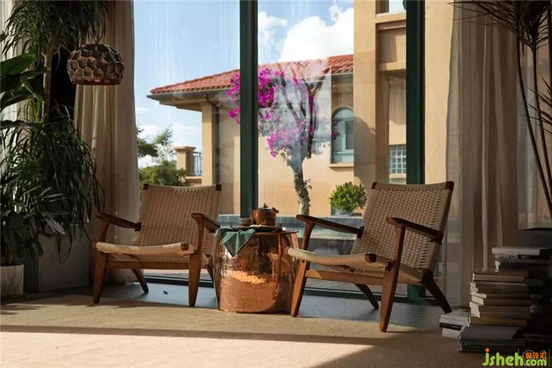 民宿設(shè)計為了讓窗外的景色更雅致,梧桐和昊子尋遍當?shù)厥袌龀庵亟鹫埢貋磉@株老樁三角梅。