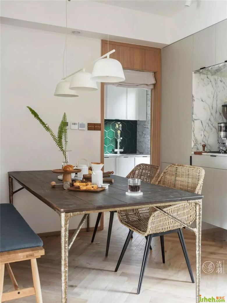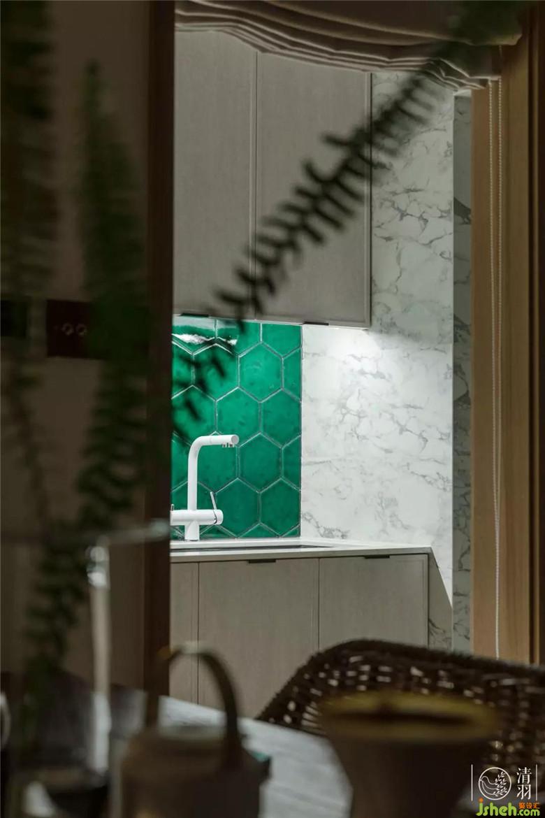 由餐桌看過去的一抹綠,便是廚房的點睛之處了。