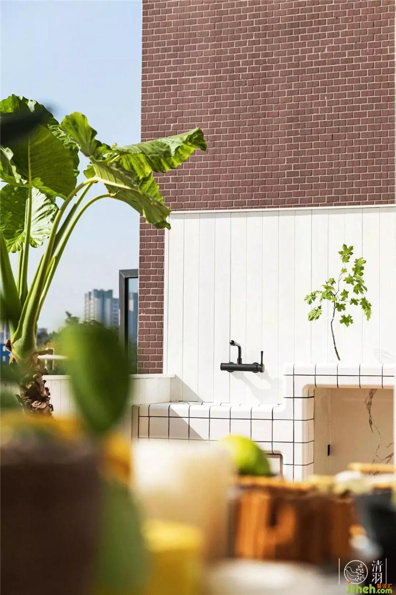以上這組圖片如果不做說明,也許會有人覺得他們走錯片場。但它的確是這套緊湊套三里的超級彩蛋,一個讓人艷羨的超大陽臺。它原本的設計方案是整個打造為玻璃陽光房,由于物管刁難,經(jīng)歷了長達數(shù)月的交涉溝通,我們反復修改方案,最后在物管要求和設計效果之間尋求平衡點,最終打造出了熱帶島嶼度假酒店般的陽光露臺。