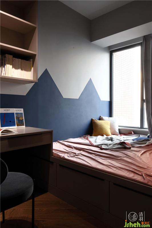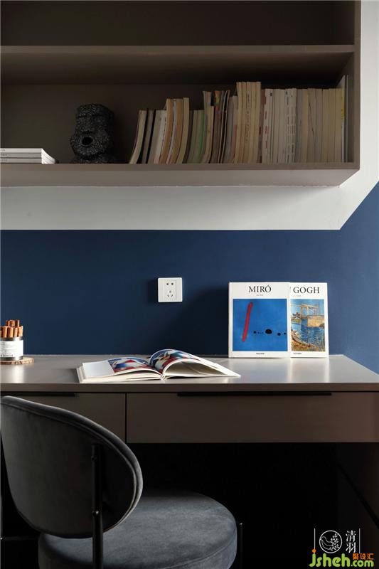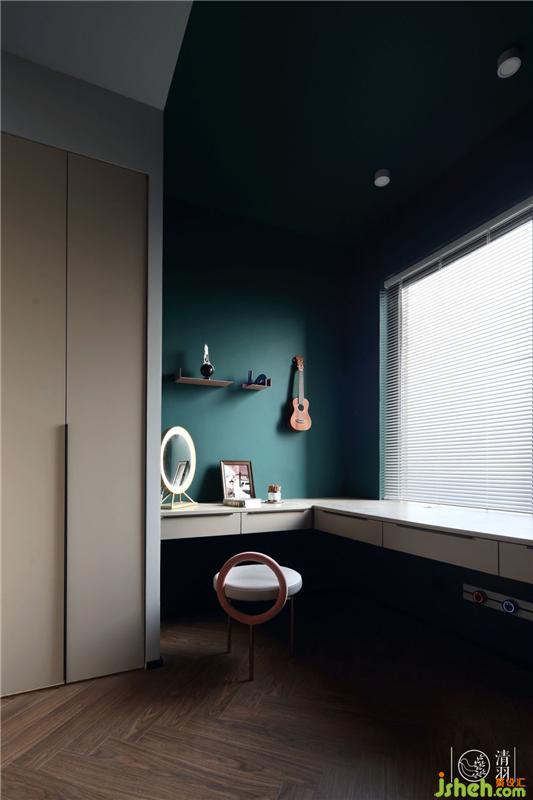 從客廳走向書房,主人公喜歡安靜,所以我們采用木質(zhì)家具的淺棕色、米白色和墻面局部的墨綠色相互搭配融合,簡簡單單的幾個(gè)色調(diào),加上家具的一字型和L字型,再節(jié)約空間的基礎(chǔ)上增加儲存容量,也將把整個(gè)空間的狹小、方寸之感拉伸,增加空間功能性。