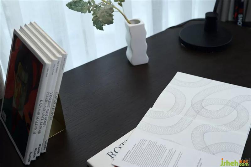 我們主要以純凈的白色墻面以及沉穩(wěn)的黑色石材為空間底色,通過黑加白,空間在色彩的對比中,將各功能區(qū)劃分分明。