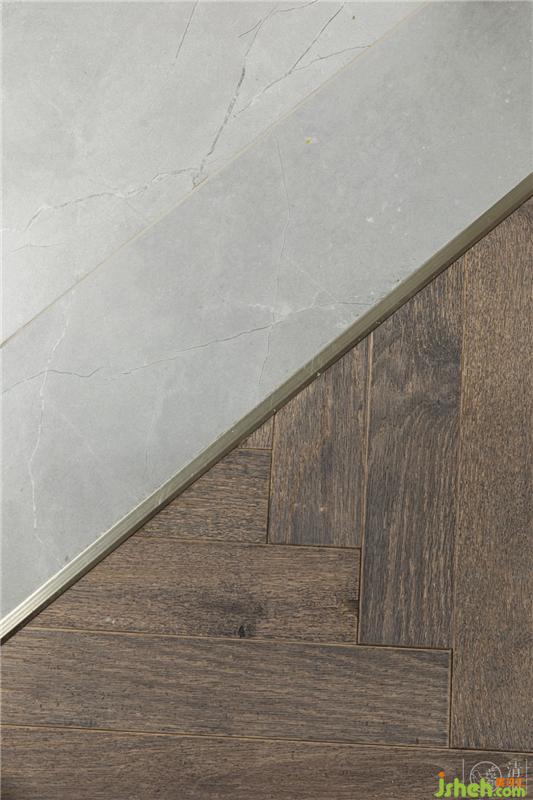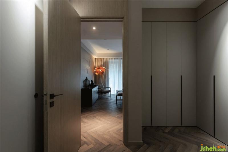 與衣帽間的交接處只以銅條接駁不同的地面材質(zhì),劃分出空間的功能性, 同樣全屋無(wú)高差設(shè)計(jì)。
