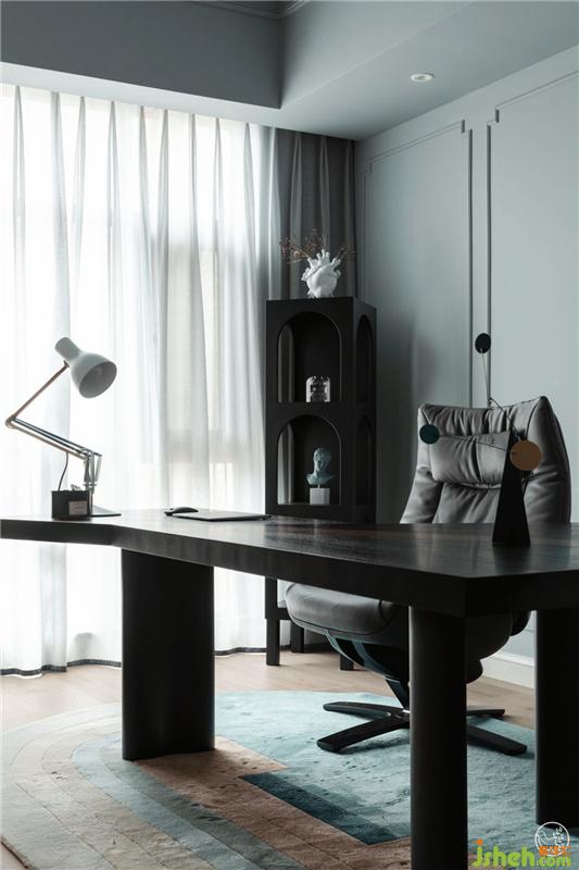 主色調(diào)是能讓人快速感到平靜安寧的,海邊天空的淺灰藍(lán),墻面呼應(yīng)客廳做了最簡(jiǎn)單線條勾勒,畢竟看書(shū)或辦公都多少需要一些儀式感的。室內(nèi)設(shè)計(jì)師