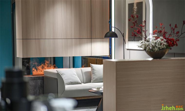 弧形的空間構(gòu)造,削弱直線條帶來的生硬感,木與金屬、幾何形體與弧線穿插疊加,使得大面積的通透空間更加交錯有序、柔和舒緩。細膩溫和的木椅與皮質(zhì)的沙發(fā),溫潤原木質(zhì)感,回歸自然愜意意境,實現(xiàn)復(fù)古與新生的平衡表達,予人充滿煙火氣息的精致。從目之所及,到觸手可及,是一眼望穿的簡約舒適,