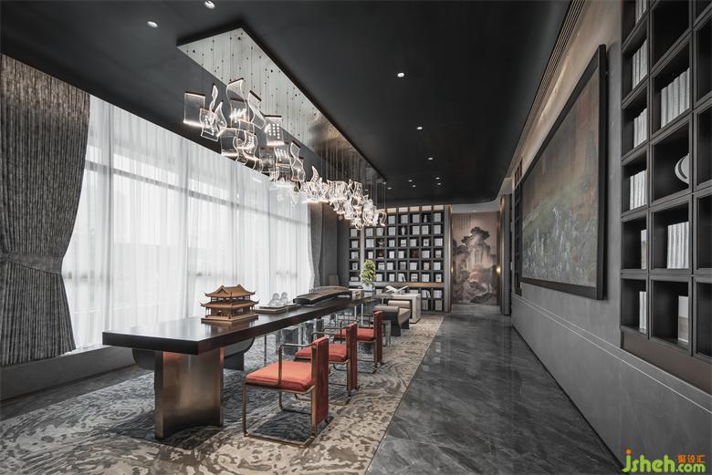 同時(shí)引入宋瓷擺件「似玉非玉更勝玉」的點(diǎn)綴,朱紅與金屬交疊,轉(zhuǎn)角處宋畫之美蜿蜒引入,銷售中心設(shè)計(jì)將水墨融入空間流動(dòng)的力量,給空間註入活力。虛無靜謐,所有的藝術(shù)變得真實(shí)可觸,灑於空間,基於時(shí)空,慢慢沈澱,漸漸呈現(xiàn)。