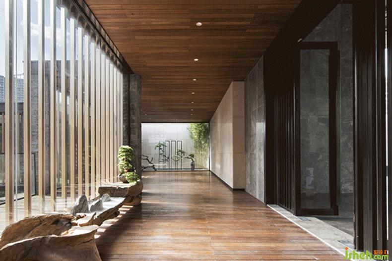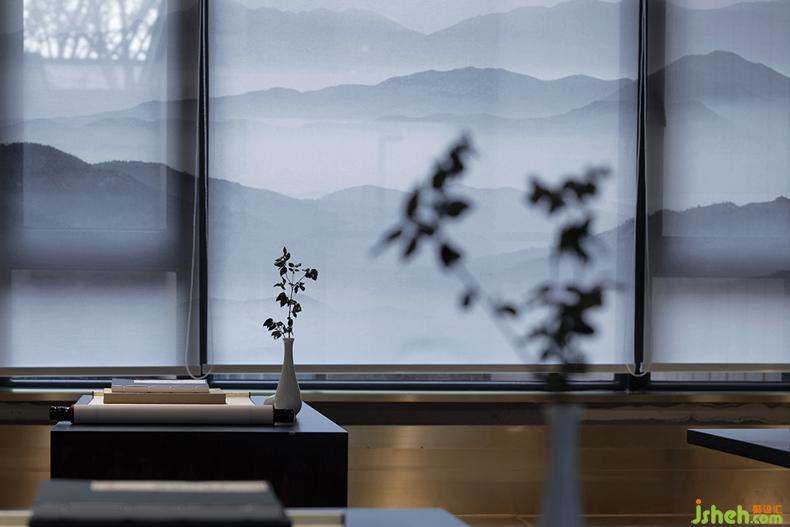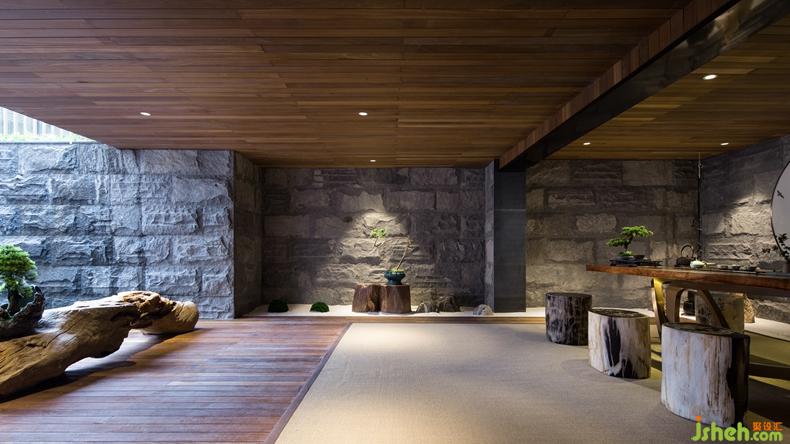 古時的書院是承載思想智慧的物質載體,中國傳統(tǒng)的智慧和趣處,就像一座座大山,身在其中,攀爬也自得其樂。“室內設計是建筑設計的延伸”這一設計理念在這里得以全面地展現。設計師提煉嶺南園林的精髓,融入傳統(tǒng)書院體系,采用現代手法演繹現代東方書院,將梁柱結構與坡屋頂的中式元素重新組合,擺脫了傳統(tǒng)書柜形式,形成新的空間元素運用至室內天花及空間各個部分;并將嶺南園林獨有的青磚灰墻置于室內且融于自然,大面積灰麻石粗曠的肌理與木材細膩的簡素本質相互碰撞,整個空間古樸莊重,一派淡泊天真之境。