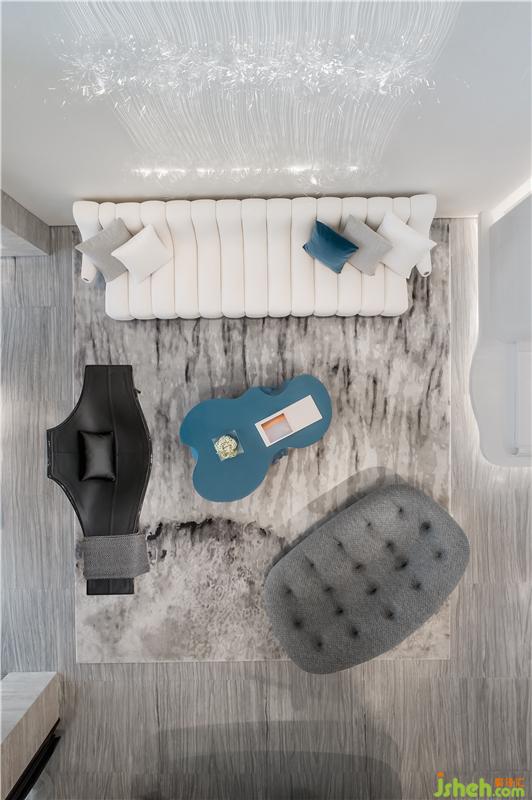 主要材料:希臘白石材、洞石、人造石、烤漆板、橡木皮、白玻璃、墻紙、皮革、鍍鈦金屬