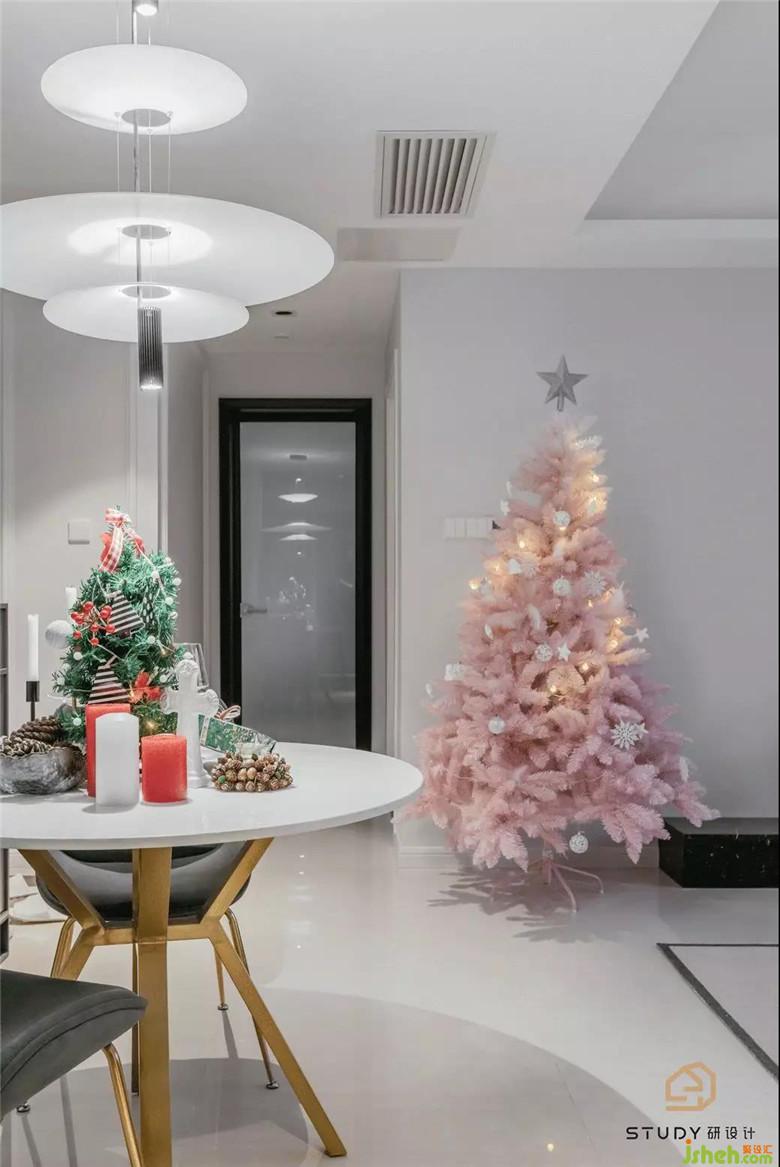 工作比較繁忙,最享受晚上倒杯酒,點上蠟燭,泡在浴缸里放松自己。喜歡獨處也喜歡招呼朋友來家里聚會,酒柜必不可少。簡潔明朗的餐桌配置,黑白搭配得淋淋盡致,室內設計師搭配上粉色的樹,使得單調的空間配色變得特別起來