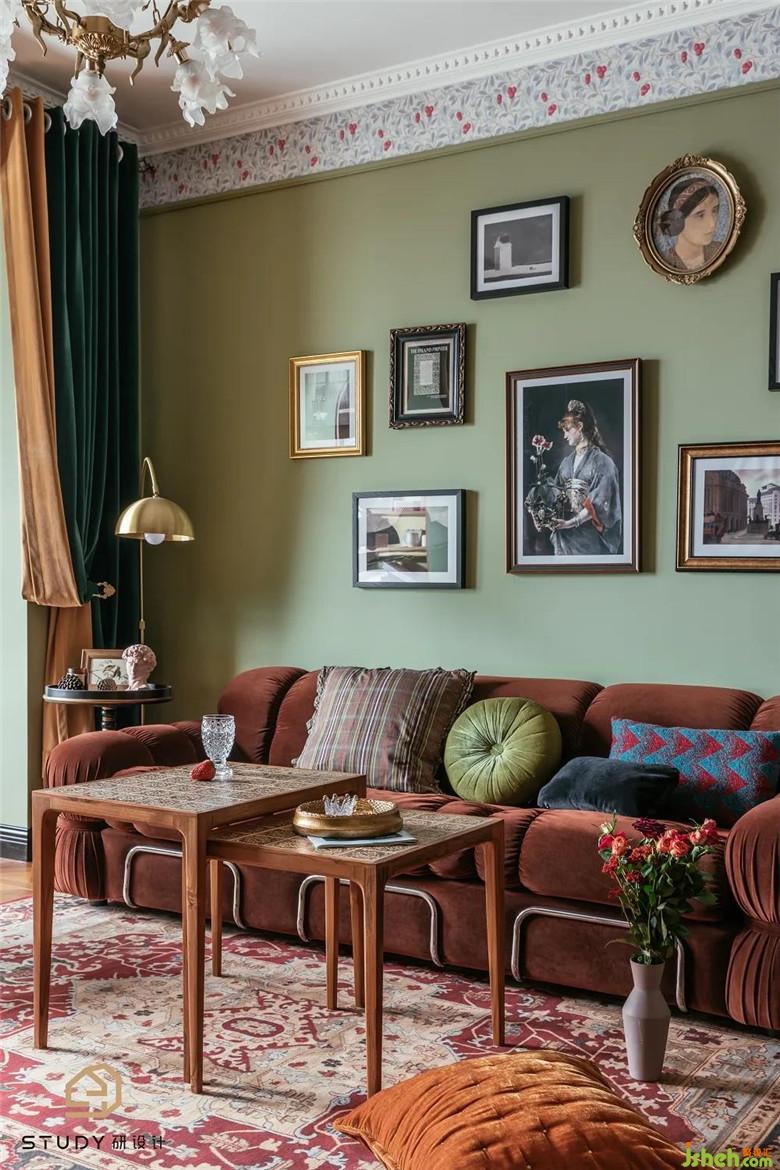 濃郁的絲絨棕紅配復(fù)古綠,