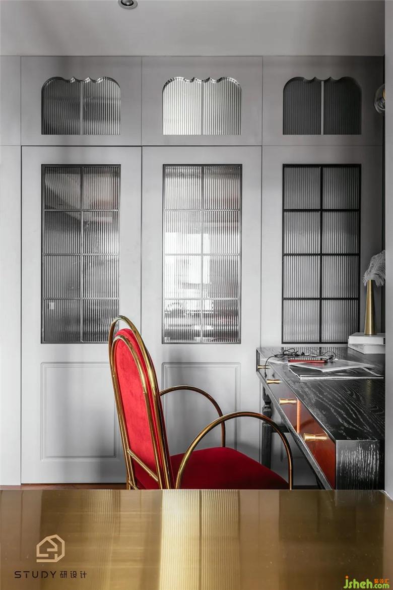 特別定制的衣帽間雙開門,線條圓潤復古,