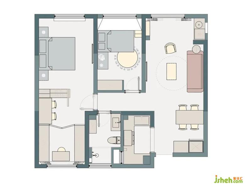 愛美的女主人,衣柜似乎永遠不夠大。儲物、試衣、化妝、熨燙,戶型改造后擁有了獨立的步入式衣帽間,輕松get功能上的多元化。