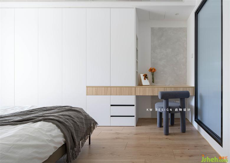 1. 進門右邊空間設(shè)為舒適好用的主臥大套間,衣帽間與三分離衛(wèi)浴作獨立換洗區(qū)。深圳家裝設(shè)計睡眠區(qū)床尾梳妝臺連接衣柜作收納補充。陽臺增設(shè)地臺作多功能陽光房,沿窗設(shè)置可坐可書寫平臺,地臺通鋪至客廳電視墻與公領(lǐng)域行成洄游動線,功能又各自獨立,打造可靜可動的靈活場景。