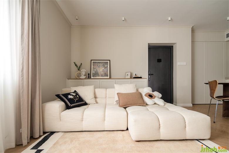 沙發(fā)由兩個(gè)1.2m的豆腐塊組成,輕巧軟糯的造型方便屋主根據(jù)心情喜好自由組合,改變或移動(dòng)功能區(qū)。
