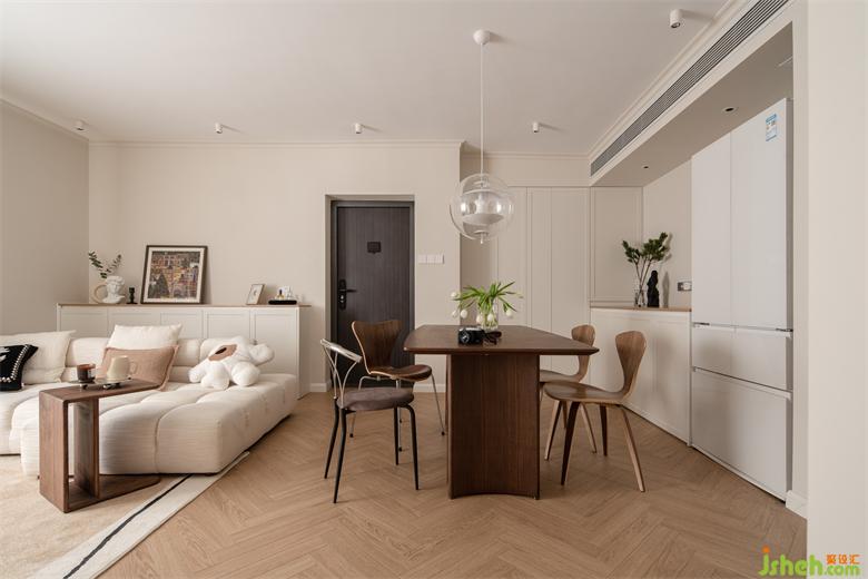 全屋通鋪人字紋木地板,與簡(jiǎn)約的天花對(duì)比出空間張力,空間上以清新奶白的溫潤(rùn)材質(zhì)和色系為主,景新花園家裝設(shè)計(jì)點(diǎn)綴深沉棕的樸實(shí)質(zhì)感,渲染人文休閑氣韻和清透無(wú)壓的愜意氛圍。