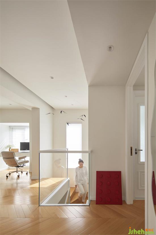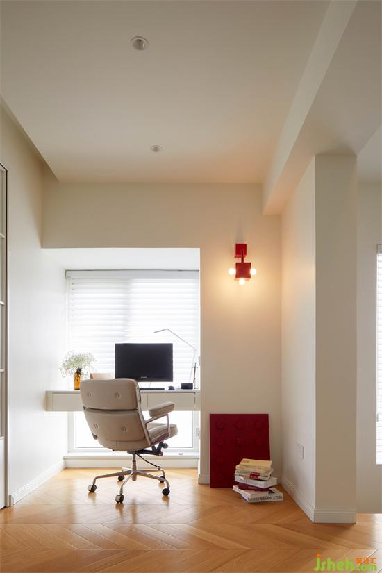 靠窗凹位定制書桌作為羊羊和先生臨時辦公的區(qū)域,旁邊空位預留壁燈作閱讀角。佳兆業(yè)悅峰復式裝修設計紅色裝飾點綴能很好調動小朋友的情緒,增加活力。兼具陪伴與互動的空間幫助小朋友成長。
