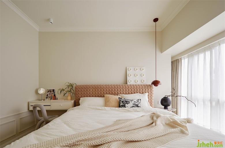 以軟裝烘托意境來打造輕法式浪漫。一張獨特又溫柔的Ruche床,一盞夢幻復古的裝飾吊燈就能圍合個性又溫馨的睡眠區(qū)。