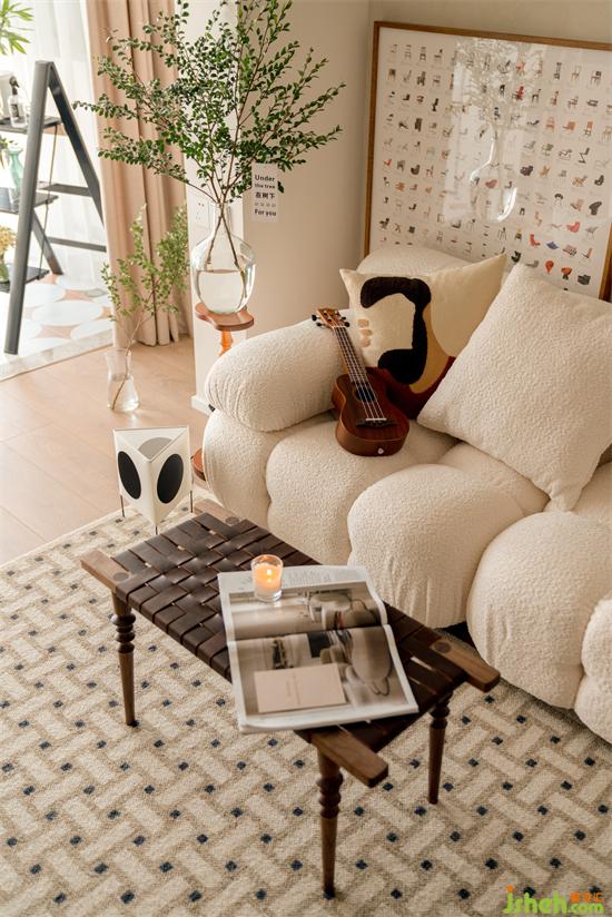 整體風(fēng)格以小兔喜歡的奶油系北歐為主,溫潤(rùn)空間糅合輕復(fù)古韻味的家居和配色,營(yíng)造活潑自愈的溫柔家。