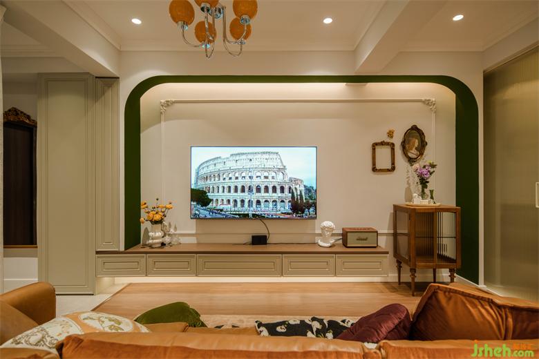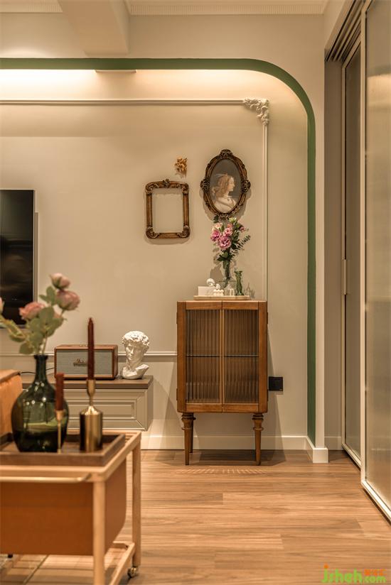 電視墻的收納并沒做滿,右邊的適當?shù)牧艨?,可以讓MIA根據(jù)不同心情和喜好置辦展示端景。怡楓園家裝設(shè)計裝飾畫很有復古宮廷韻味,一個精致斗柜或者一把椅子,就可以撐起一處極具藝術(shù)氛圍的文藝角落。