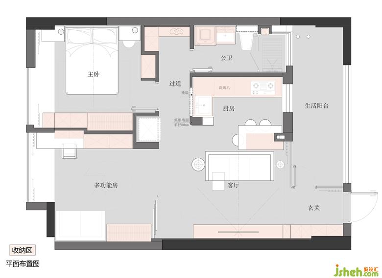 1. 考慮房子主要是MIA一個人居住,怡楓園家裝設(shè)計保留靠里的獨立臥室,取消與客廳相鄰的房間墻體,做開放多功能房,給公共空間增加自然采光,同時預留了折疊推拉門可以實現(xiàn)兼做獨立客臥的功能。