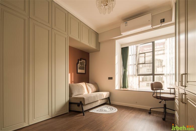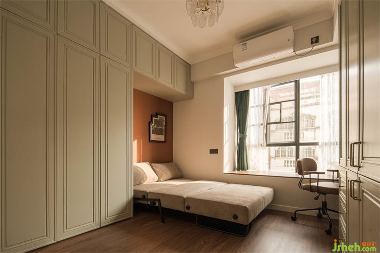 關(guān)上多功能房的推拉門,1.5m的沙發(fā)床打開(kāi)就是一個(gè)獨(dú)立的臥房空間,可供友人和父母暫住。