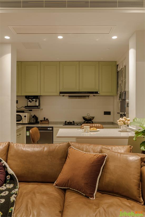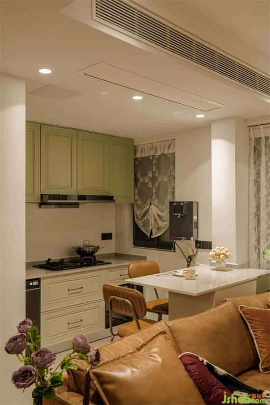廚房靠過(guò)道側(cè)開(kāi)了一扇拱形門洞,增加空間的互動(dòng)和趣味性。