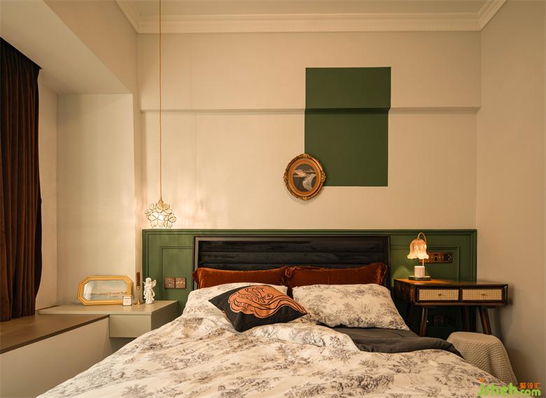精致典雅與自然留白的臥室布置,更具法式浪漫韻味,怡楓園家裝設(shè)計以花為造型的燈飾,高級印花與復(fù)古絲絨的床品搭配,無盡溫柔。