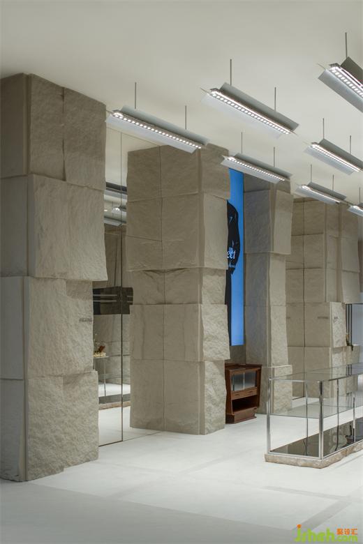 展廳設計以實現讓每一片玻璃都成為相對獨立的展位。以此滿足實際使用功能,亦延續(xù)經典時裝屋特有的“Window Design”文化。