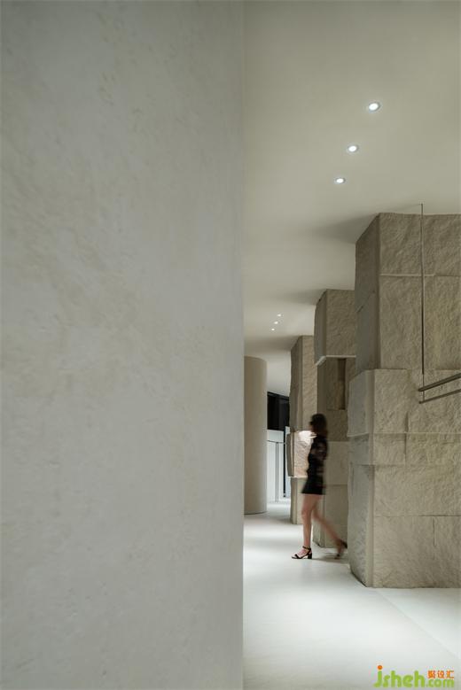 雖并非純粹的自然之物,卻能將自然界中帶有原始意向的極致美感,展廳設計通過大塊面的運用與陣列排布加以呈現。